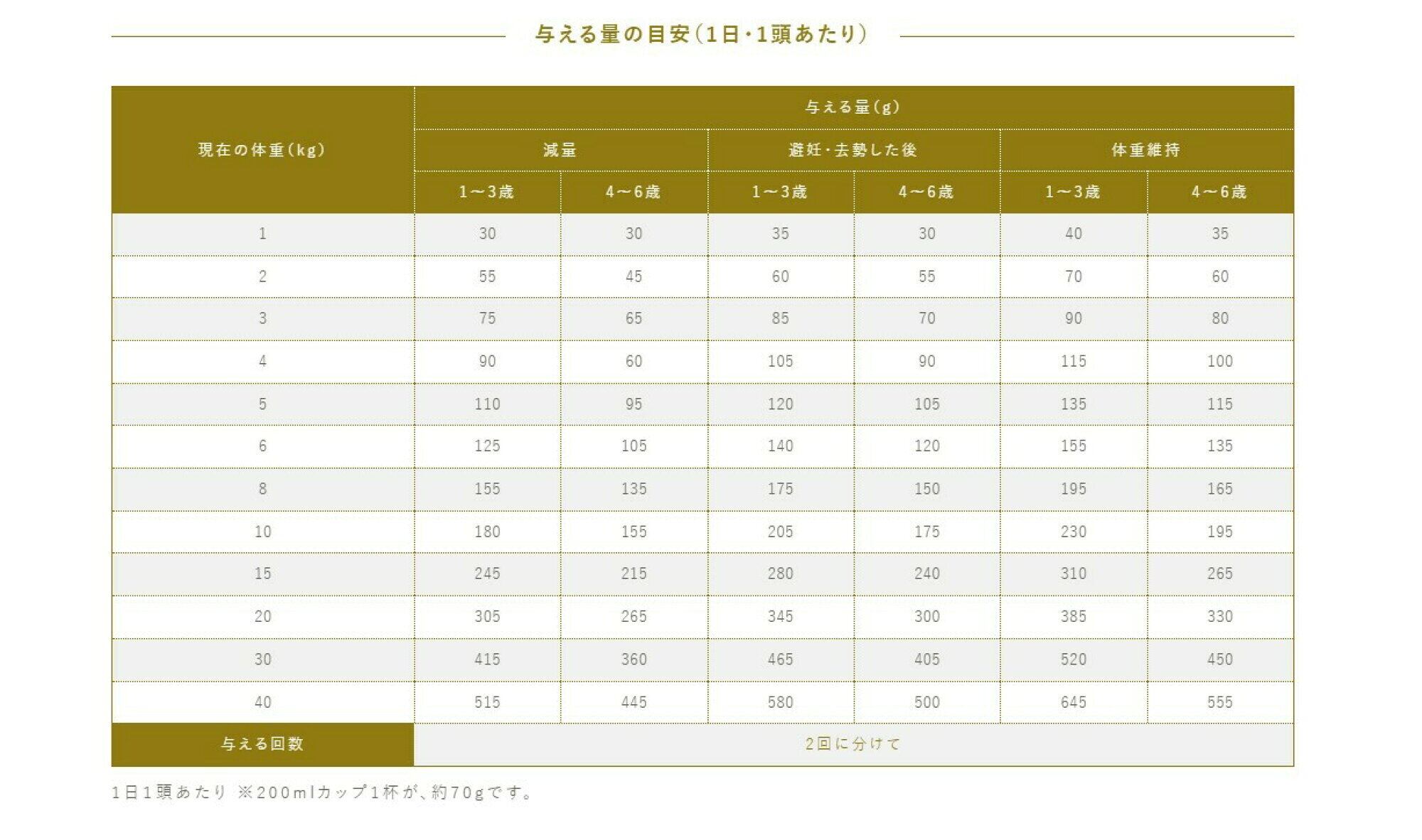 原材料 穀類(とうもろこし コーングルテンミール 小麦ふすま) 肉類(チキンミール ミートミール チキンレバーパウダー) 豆類(おから 脱脂大豆) セルロース 油脂類(動物性油脂 フィッシュオイル:DHA・EPA源 米胚芽油) 魚介類(フィッシュミール) 糖類(フラクトオリゴ糖) 共棲発酵エキス(乳酸菌 納豆菌 酵母菌) セレン酵母 シャンピニオンエキス L-カルニチン ビタミン類(A D3 E K3 B1 B2 パントテン酸 ナイアシン B6 葉酸 ビオチン B12 C コリン) ミネラル類(カルシウム リン ナトリウム カリウム 塩素 鉄 コバルト 銅 マンガン 亜鉛アミノ酸複合体 亜鉛 ヨウ素) 酸化防止剤(ガンマ-オリザノール ローズマリー抽出物 ミックストコフェロール)