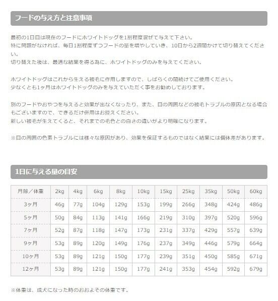 世界中のホワイトドッグの飼主から何百もの相談を受けた私たちは、日々の試行錯誤を繰り返した結果、科学者、栄養学者、経験豊かなブリーダーと連携して、白く輝きのある被毛を維持する為のフードを開発する事に成功しました。