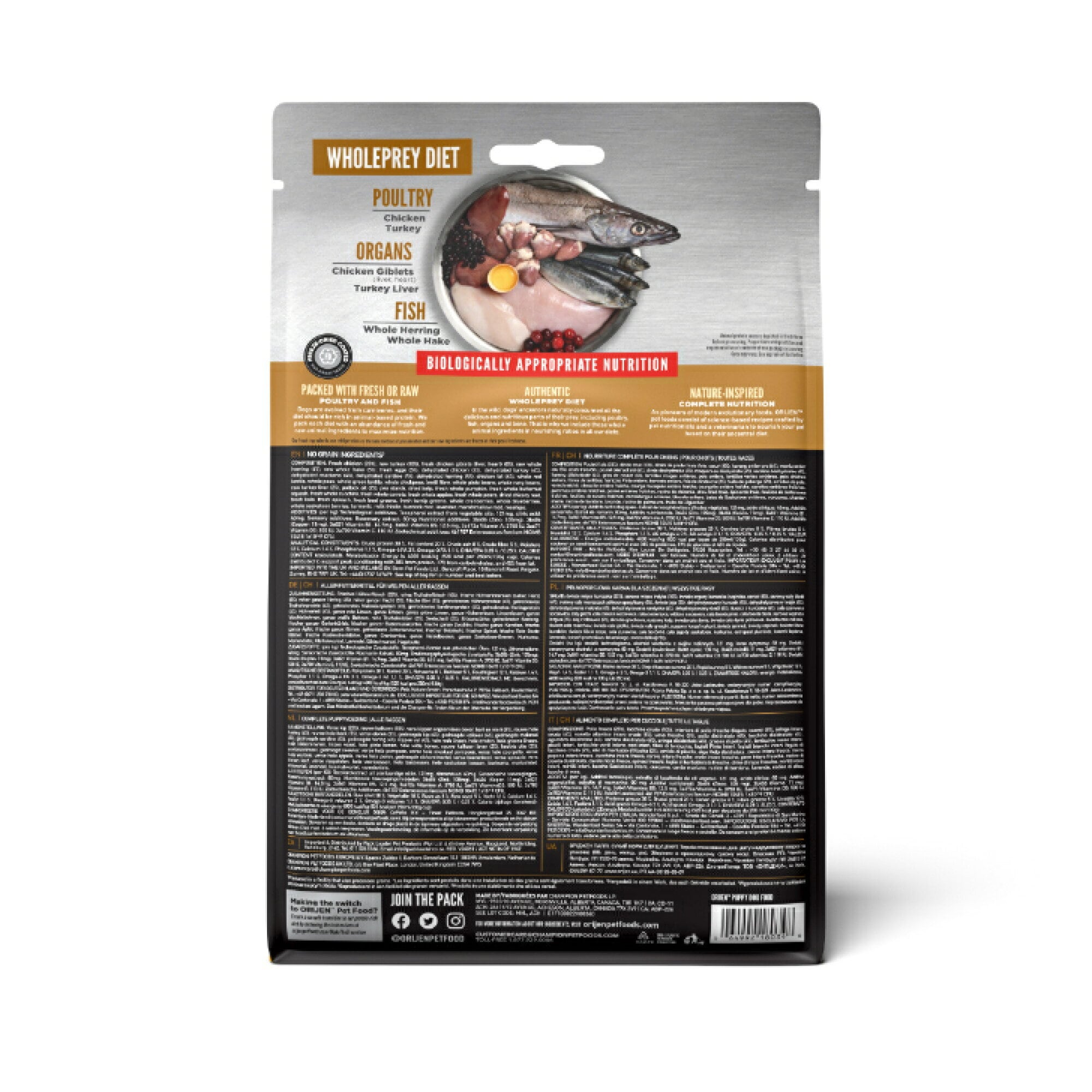 オリジン パピーには、自社キッチンに届けられた放し飼いの鶏と七面鳥、天然魚、平飼い卵のタンパク質が詰まっています。