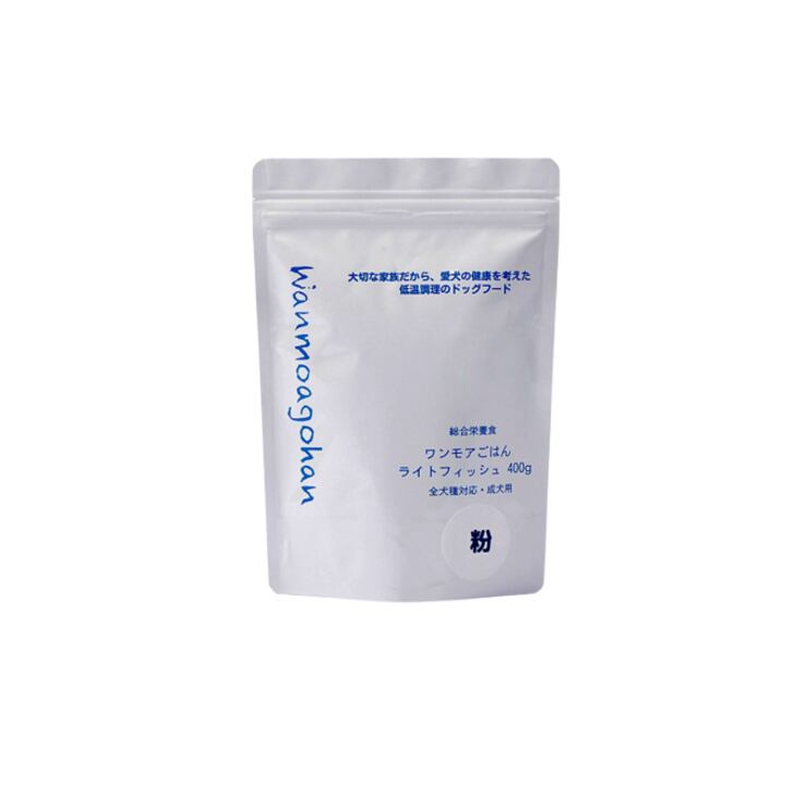 ワンモアごはん ライトフィッシュ 粉 400g 成犬用 添加物不使用 低温調理の総合栄養食 ダイエット アレルギー 老犬に